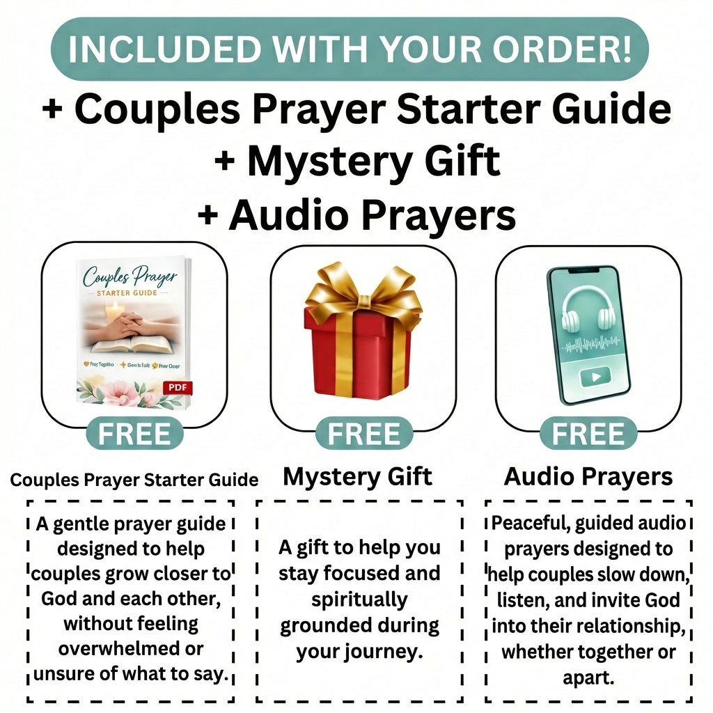 Yes. Every order includes all 3 free digital gifts: the Couples Prayer Starter Guide, Audio Prayers, and a Mystery Gift. These are delivered after purchase at no extra cost.